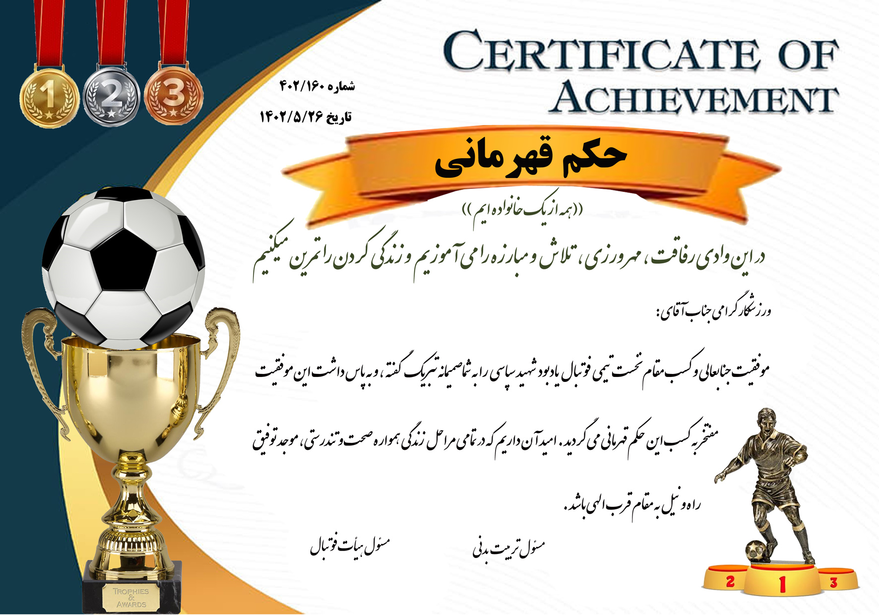 • دانلود لوح تقدیر مسابقات فوتبال کد3